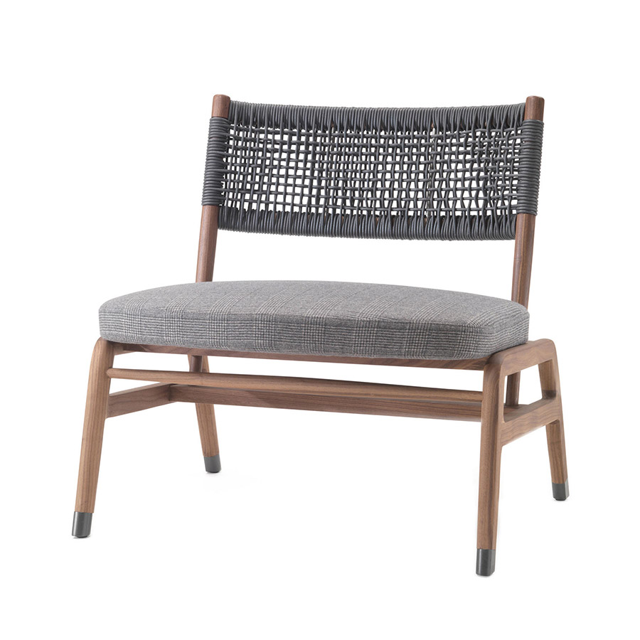 Equipo FlexformA family of seats characterized by a classic bourgeois charm reinterpreted in a contemporary key declined in quality materials and embellished with refined details. The structure of the Ortigia armchairs is characterized by a remarkable visual lightness and is made entirely of solid American walnut or ash wood, worked with techniques that recall the wonderful cabinetmaking tradition.