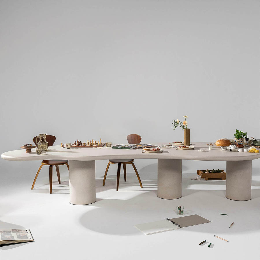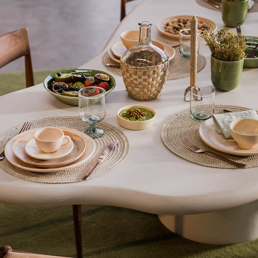 Bieke CasteleynThe Out of Line table is handmade to order in Belgium. It combines elegance and sturdiness, and stands out for its unique and contemporary aesthetic. The use of concrete as the main material gives the table a sense of strength and durability. The Sand finish shown in the photo, with its rough and tactile surface, adds a touch of originality to the table. This texture gives it a natural and artisanal look, creating a fascinating contrast with its round and modern shape. The Out of Line table is also notable for its clean and minimalist lines; the irregular shape, combined with the use of concrete, gives the table a contemporary and sophisticated appearance.