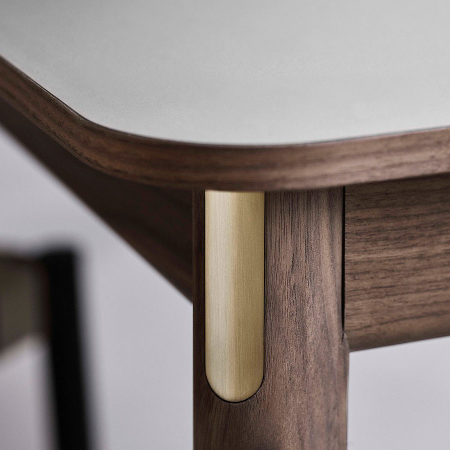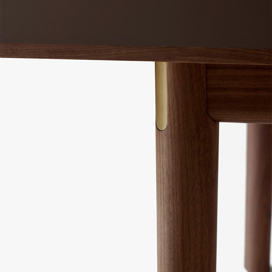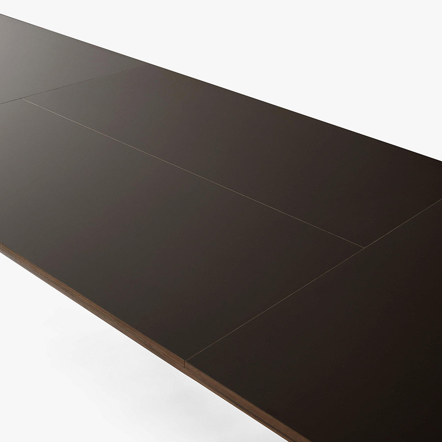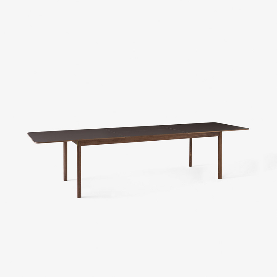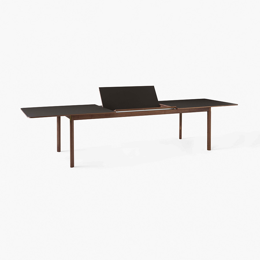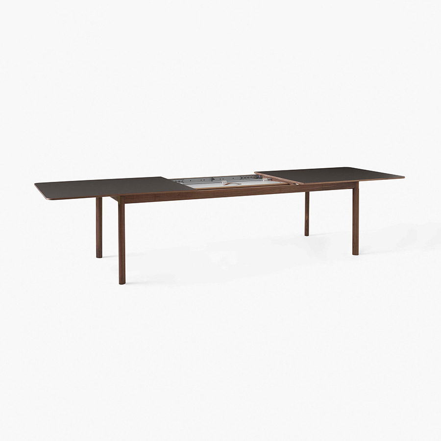 Hee WellingNano laminated MDF table top. Extension blades with plated and beveled edges. Solid wood structure and legs. Metal fittings.