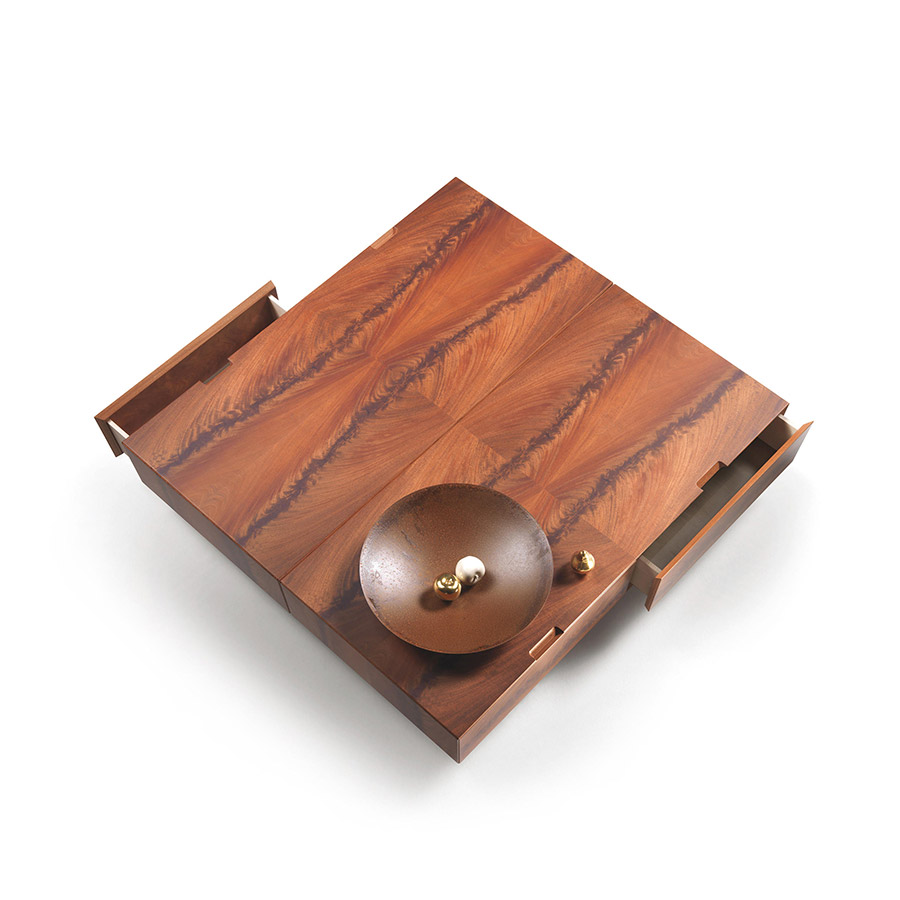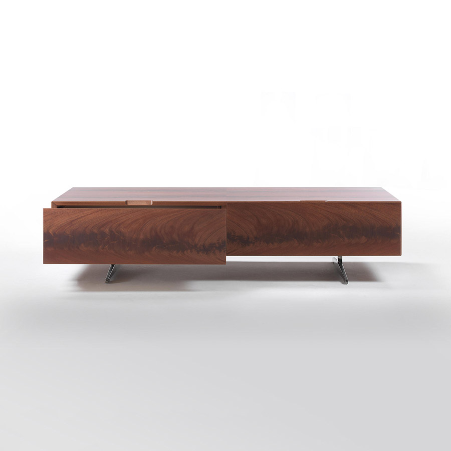 Antonio CitterioThe Piuma container collection combines the rigor of form with the rich expressiveness of wood. The studied simplicity of the design is a counterpoint to the choice of plywood made from rare and precious woods, such as mahogany quill, amara ebony, hickory and ash, which are offered in various shades. The absence of handles, which are located directly on the structure with grooves carved with a 45° cut, accentuate the slim and essential line of this furniture that lends itself to being placed in any room and is easy to combine with all tables. , chairs, sofas and armchairs from the Flexform collection. Piuma containers are available in various vertical and horizontal configurations: cabinets with doors and drawers, sideboards, TV cabinets and coffee tables with drawers. All the elements are perfectly finished, even at the back, so they can also be placed in the center of the room.