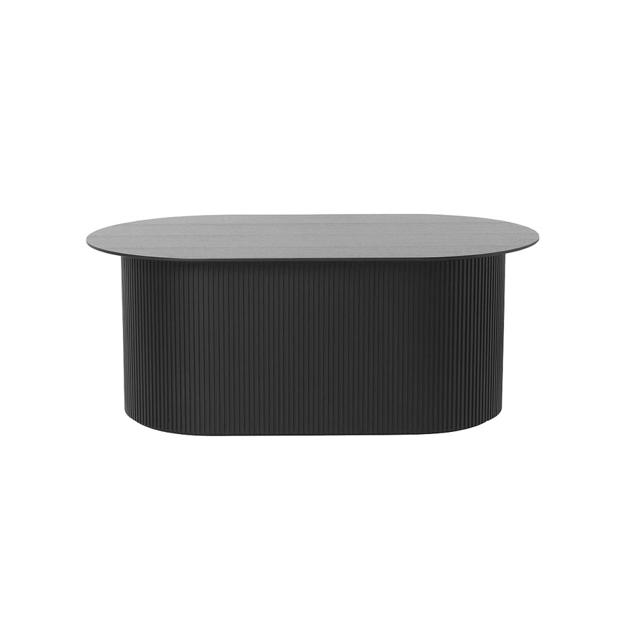 With its sturdy style, the Podia Table will provide a solid base for your living room. The oval table is made of wood, with slats on the sides that emphasize the table’s graphical expression. Lift the tabletop to reveal a spacious storage area for all your essentials. Its versatile features make it ideal for smaller living rooms.