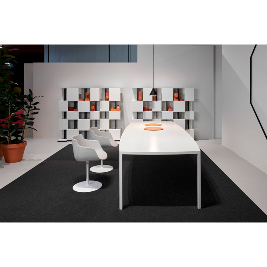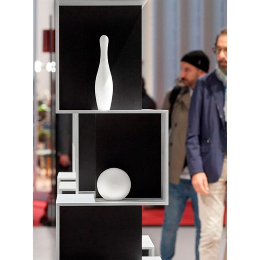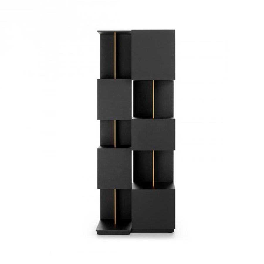 “The project originates from the complexity of the period we live through. The plurality of points of view is often present in our daily lives”, says the designer. Therefore, the versatility of this multipurpose storage unit, available in three heights, is proposed in white with black ash partitions or in anthracite gray with gold lacquered sections.