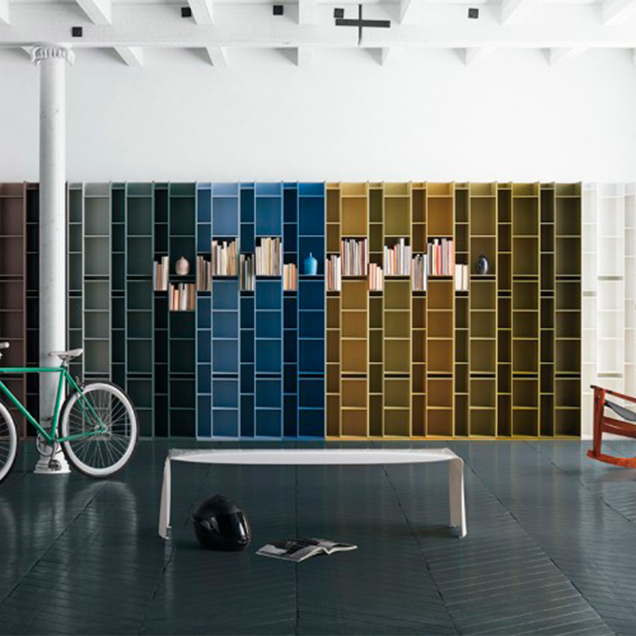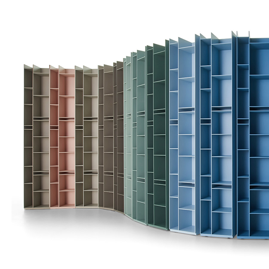 Pastel tones are successful not only on the fashion catwalks but also in conquering the iconic Random shelf, which ditches white for pale, delicate, and romantic colors: from calming shades of blue and green to an elegant shade of pink, combined with perennial gray. In addition, an unexpected new color palette gives the bookcase a new look; the colors adapt to any room since they are warm and relaxing, to combine with any furniture and accessories.