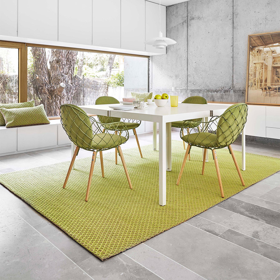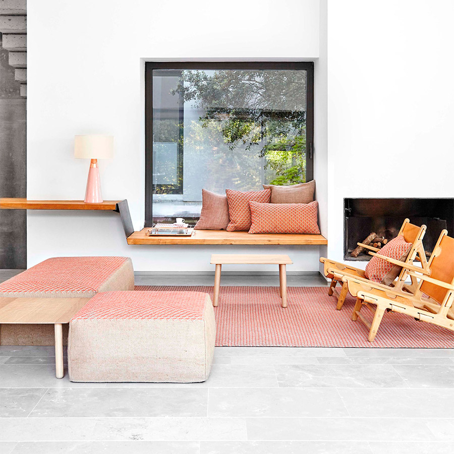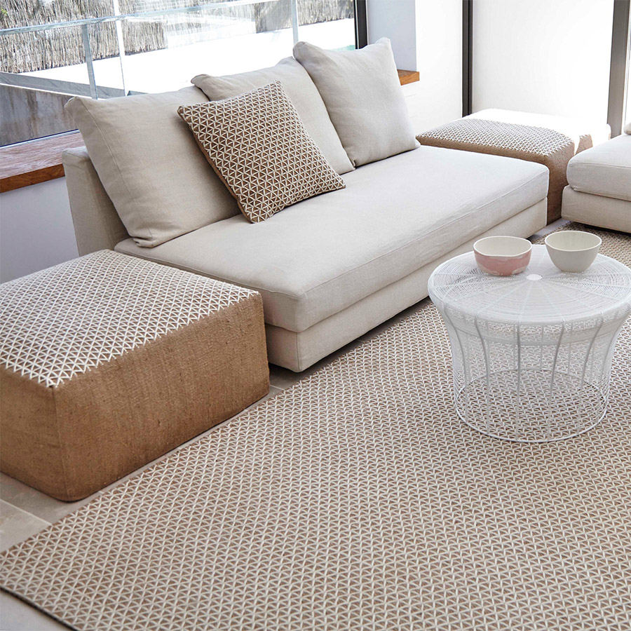 The Raw collection, designed by Borja García, is a masterful exercise in achieving a lot with very little, seeking the maximum expressiveness of two very basic materials while simultaneously translating them into an essential design. The series comprises rugs, poufs in two sizes, and cushions made by hand using manual looms. Its simple geometric line of triangles is manifested in a captivating way on this material with strong rustic connotations, which works as the perfect canvas for such a calm and serene composition. It is available in two sizes.