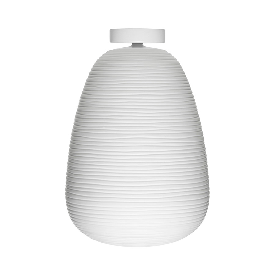 Ludovica Serafini Roberto PalombaRituals is a meeting between East and West, memory and contemporaneity, poetic inspiration, and technological research. A family of distinct and complementary shapes that translate the luminous magic of oriental rice paper lanterns into the precious appearance of blown glass. The particular elaboration of the glass, with irregular lines affecting the surface, has been obtained thanks to the industrialization of the artisanal polishing process. The result is a soft and fascinating decoration that creates an inimitable sensation of chiaroscuro and soft, diffused light. The strength of this design concept has allowed the development of new sizes and declensions of use. We are not talking about simple adaptations but about authentic explorations of further possibilities for this project. Also, the ceiling version, available in three different shapes and sizes, presents the diffuser entirely thanks to a discreet structure, a pure and simple circular shape that leaves glass as the protagonist.
