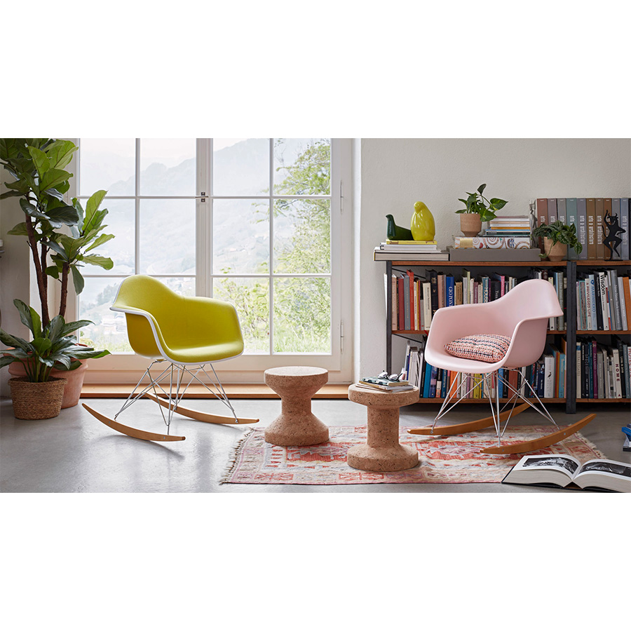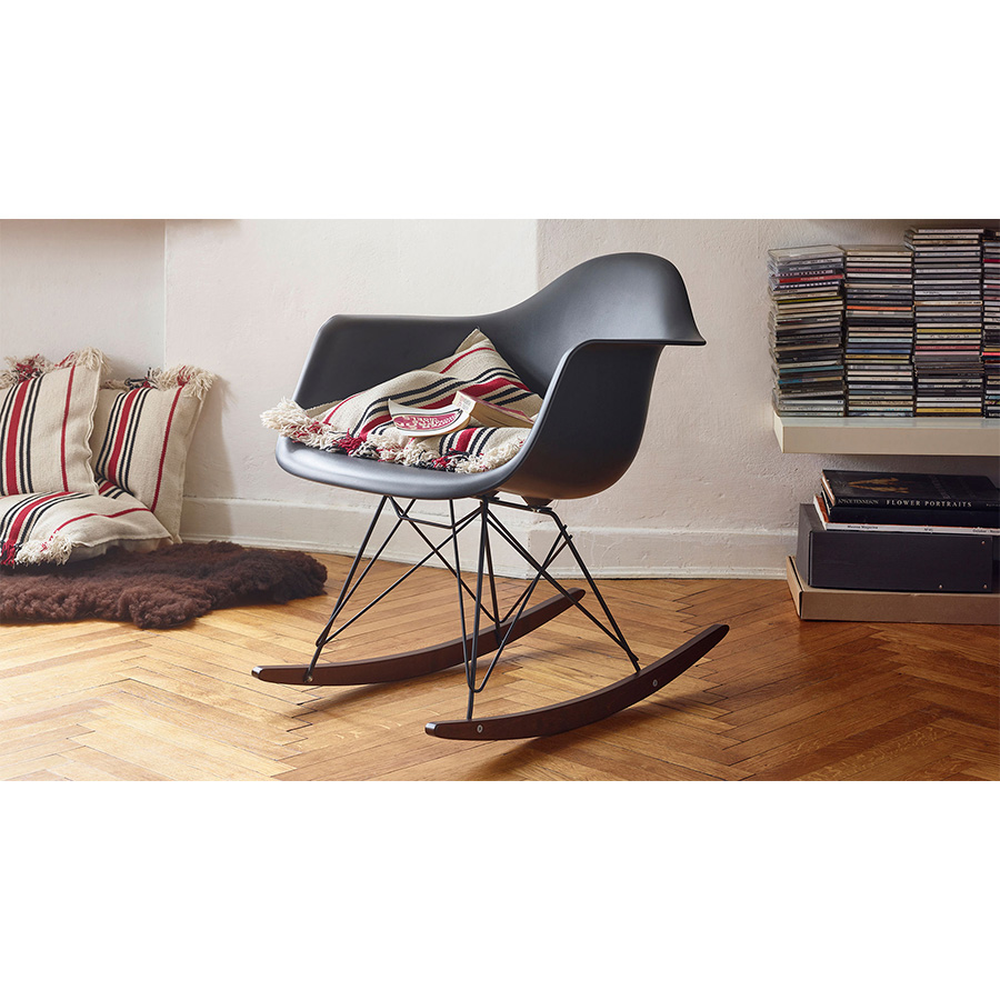 The Plastic Chairs are among the most famous designs by Charles and Ray Eames. In this great family of chairs, a model has always stood out: the Rocking Armchair Rod Base (RAR). Despite its small size, it offers pleasant comfort even for taller users and is available with a seat cushion or fully padded. RAR is an authentic armchair that adds an original and fun touch to any room with its iconic shape and rocking chair base.