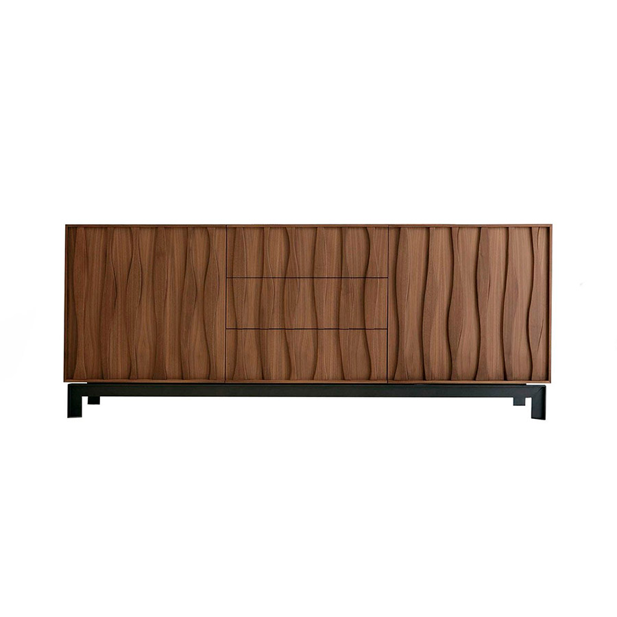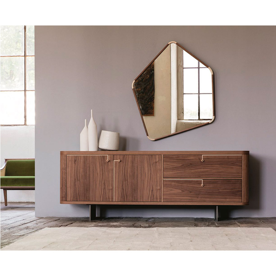 U. AsnagoSideboard in canaletta walnut with natural maple decoration and base in brushed bronzed brass with two doors and two drawers.