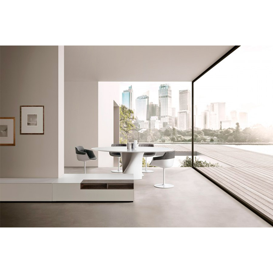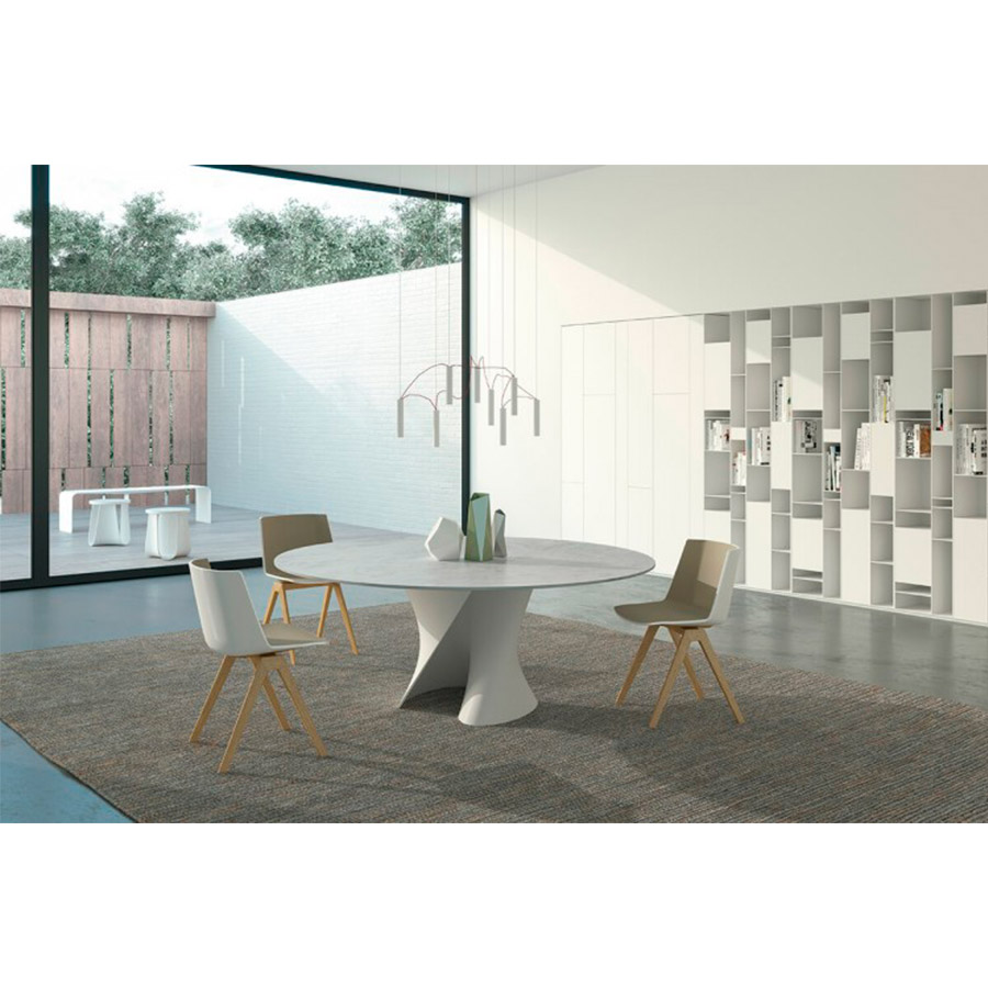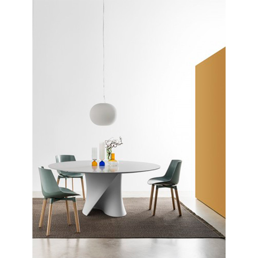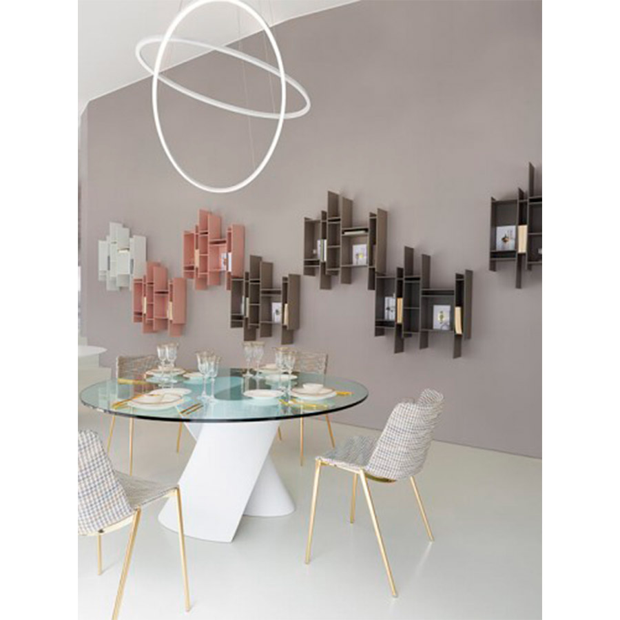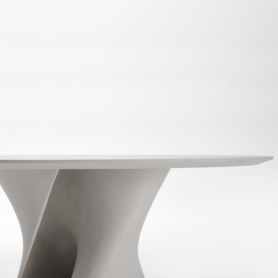 The award-winning designer’s creations truly stand out for the visible tension he gives to his objects, featuring curves inspired by the process of (de)forming metal surfaces that identify his entire creative journey. The support, molded in Ceramilux or Cristalplant, a technologically advanced, hypoallergenic, and non-toxic material, can be crowned with different types of top – in glass, wood fiber, marble, or Cristalplant – to further personalize an already unique object.