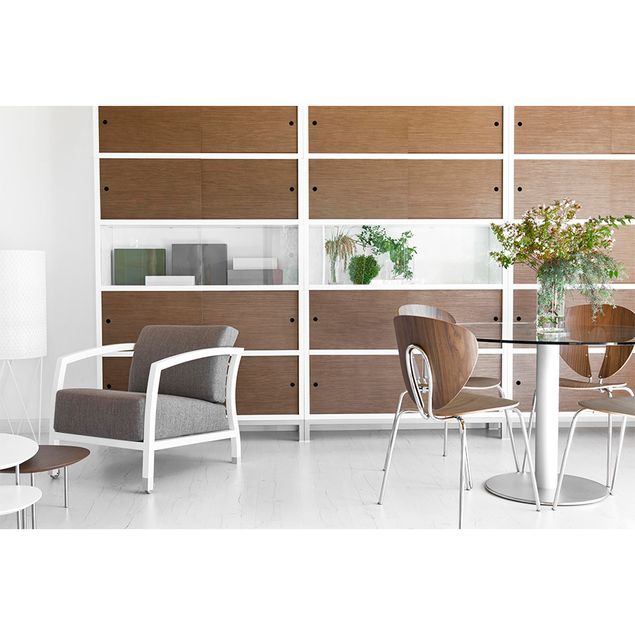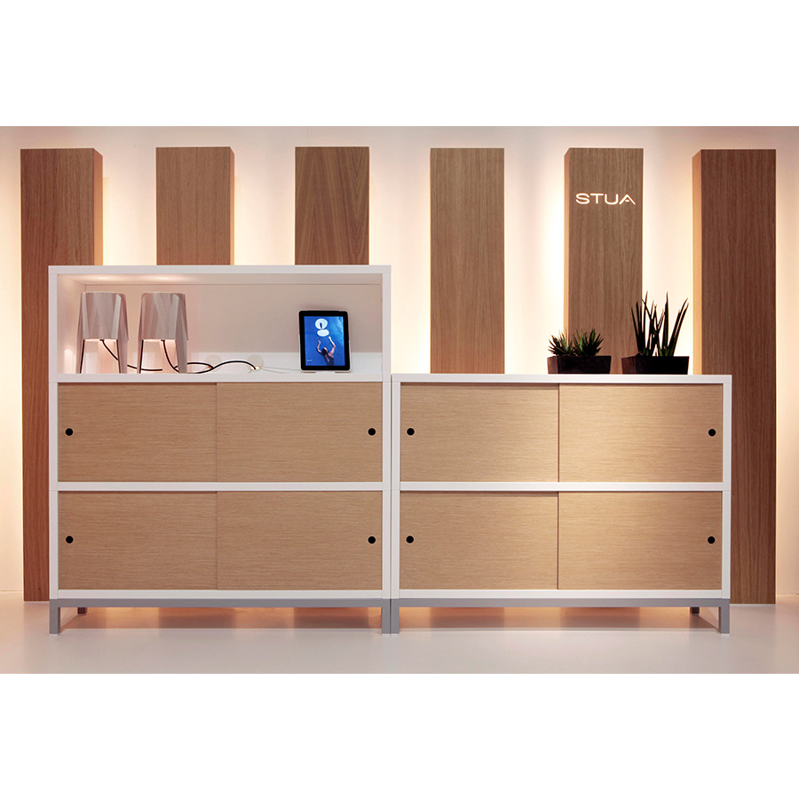 Sapporo is a versatile and straightforward system. It is an individual module that can be composed, stacking, from 1 to 6 heights. The Sapporo module is supported on a fixed white lacquered steel base or wheels (with wheels, the maximum is two heights).