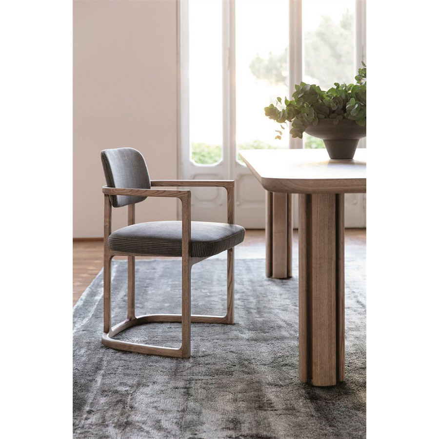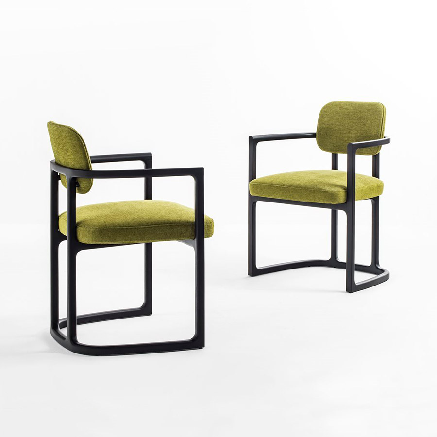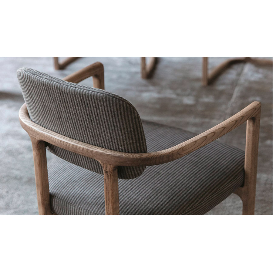 E. GallinaSerena is a unique chair with details that make it a sculpture. Serena is a chair with armrests with a solid ash frame covered in the collection’s fabrics.