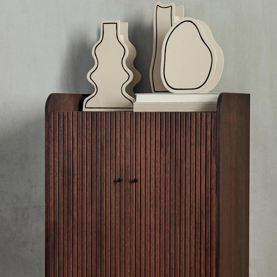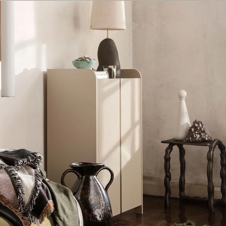 Versatile, functional and stylish, the ferm LIVING Sill Cupboard embodies Scandinavian contemporary design. Featuring scalloped doors and beautifully rounded corners, a number of simple yet effective details contribute to a sophisticated overall expression. Perfect for storing accessories, books and other objects, the narrow and compact structure complements a number of spaces within the home, offering practicality whilst adding style and character to your home.