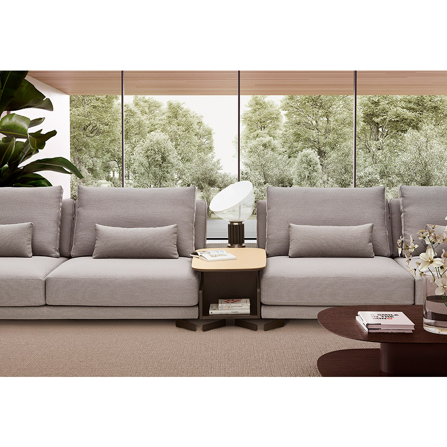 Mario RuizThe clarity of its design and the balance of its proportions give Pulse a distinctive character that celebrates comfort and quiet sophistication. It invites you to play with its composition and functionality: available in two depths and different dimensions; Pulse also offers the option of organically integrating functional elements such as wooden modules that function as arms or containers. A flexible sofa that brings warmth and comfort to spaces of different sizes. Removable upholstery in seat cushions, back cushions, and auxiliary cushions. Wood frame covered with foam and fiber. Seat cushions are made in different densities of polyurethane foam, padded on the surface with wool.