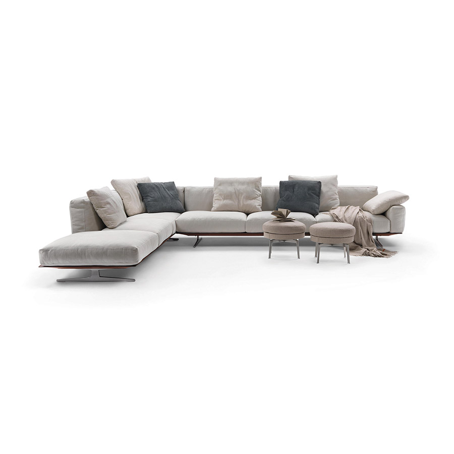 Antonio CitterioMeasure yourself with the desire to design a sofa that favors the dimension of the dream. A challenge faced with determination that has given birth to the concept of the Soft Dream sofa, which already announces its prerogatives in its name. Versatile, flexible, chameleon-like: this is the personality of the Soft Dream seating system. The lightweight sofa rises from the ground thanks to refined feet in gray and bronze painted die-cast metal, also available in satin, chrome, burnished, champagne and black chrome finishes.