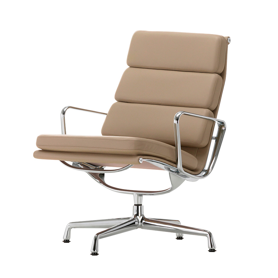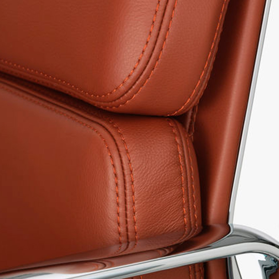 The design of the Soft Pad Group dates back to 1969. Both in terms of construction and shape, the creation of the Soft Pad Chairs is similar to that of the Aluminum Group. However, the stitched cushions make a striking contrast to the slender aluminum profiles. The Soft Pad Group chairs are softer and more voluptuous than those of the Aluminum Group but retain the same refined lines of their silhouette. As a result, the chairs adapt to the body and provide extraordinary comfort. Vitra has been producing the chairs of the Soft Pad Group for decades, always with high quality. This experience allows us to offer a 30-year warranty* on all Soft Pad Group chair models.
