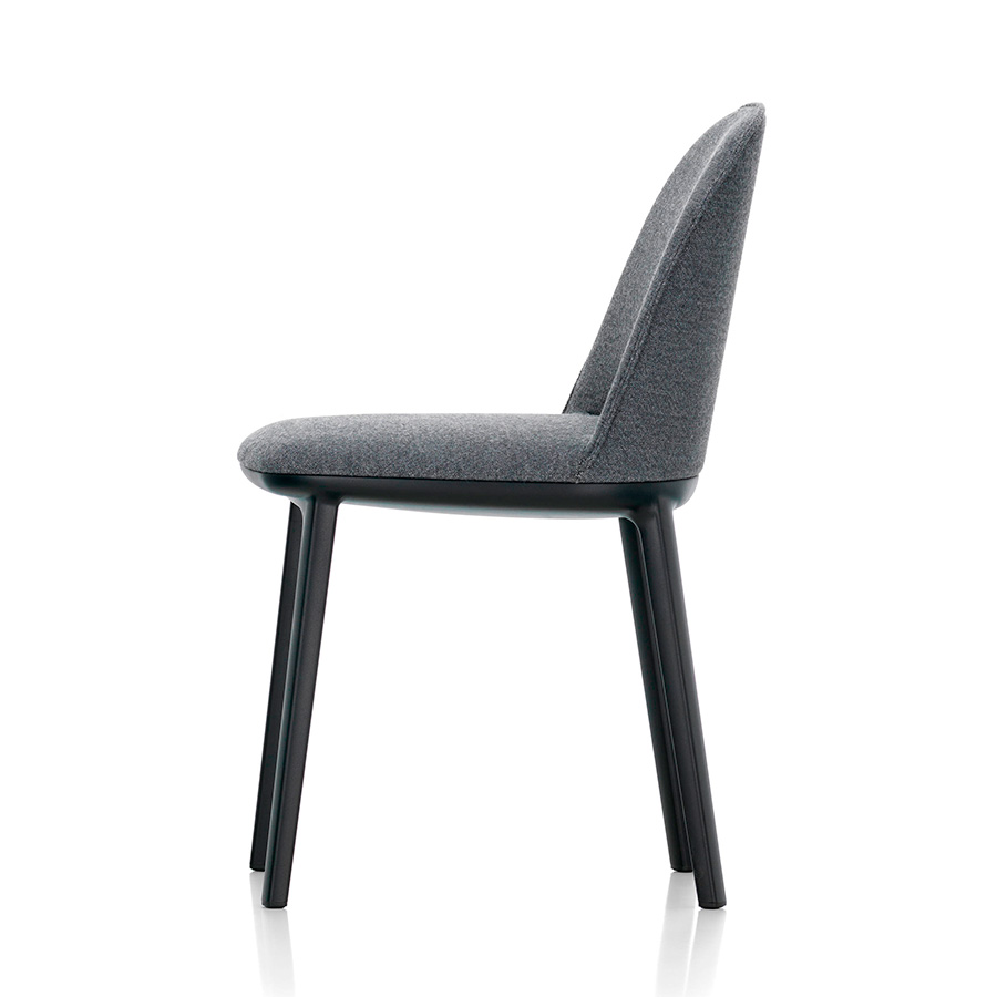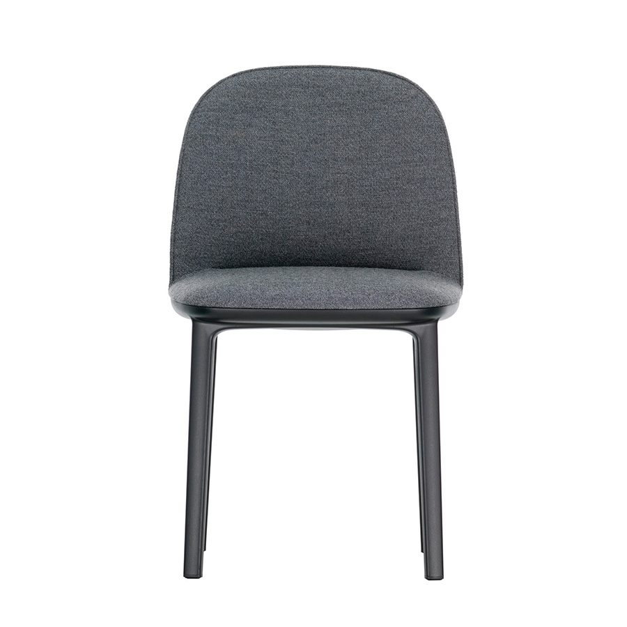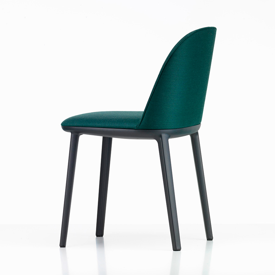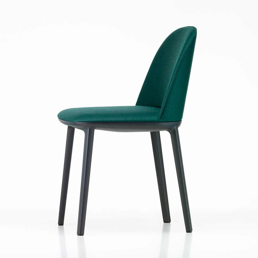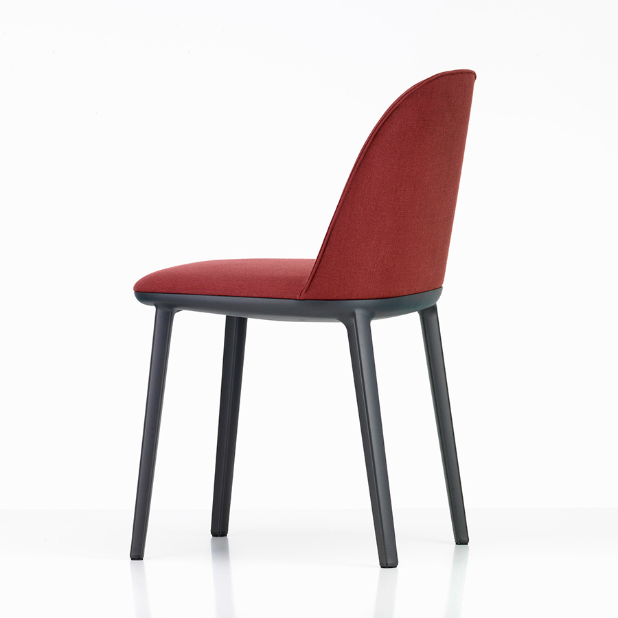The Softshell Side Chair, whose soft contours are defined by pleasant padding, has an extraordinarily comfortable seat and a compact size: the hidden vertical rods in the upper part of the backrest offer flexibility and remarkable freedom of movement, as well as extraordinary comfort even when sitting for a long time. The Softshell Side Chair has a four-legged base made of resistant plastic that accentuates the understated elegance of its design. Thanks to their close resemblance, the Softshell Side Chair, and the Softshell Chair can be perfectly combined on the same table. Both chairs are available in the same fabric or leather upholstery and a wide range of colors.