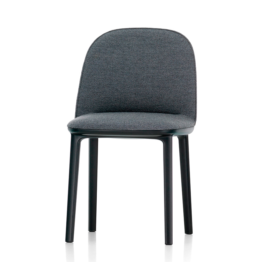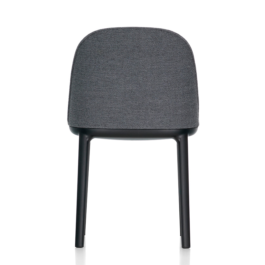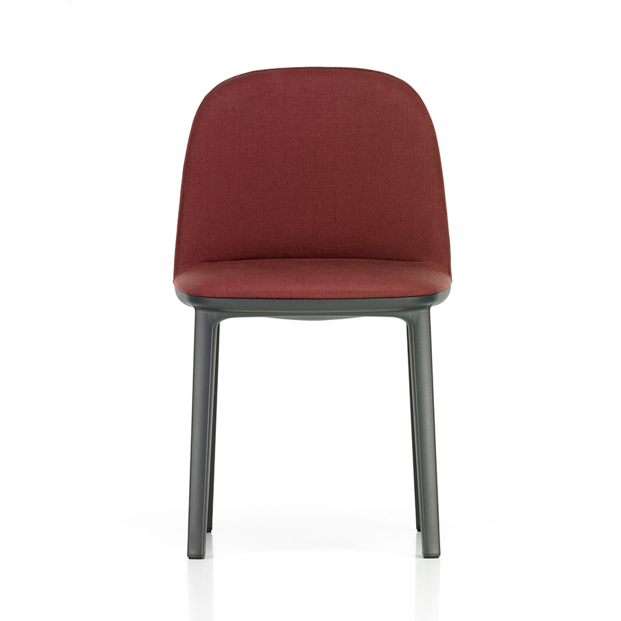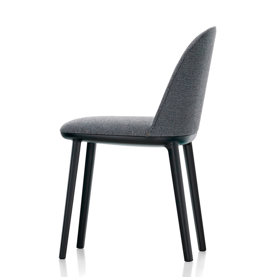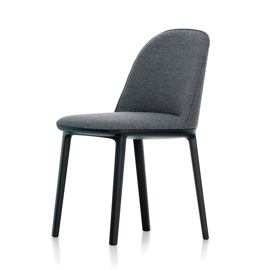 The Softshell Side Chair, whose soft contours are defined by pleasant padding, has an extraordinarily comfortable seat and a compact size: the hidden vertical rods in the upper part of the backrest offer flexibility and remarkable freedom of movement, as well as extraordinary comfort even when sitting for a long time. The Softshell Side Chair has a four-legged base made of resistant plastic that accentuates the understated elegance of its design. Thanks to their close resemblance, the Softshell Side Chair, and the Softshell Chair can be perfectly combined on the same table. Both chairs are available in the same fabric or leather upholstery and a wide range of colors.
