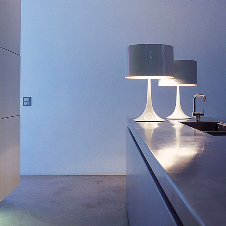 At the origin of Flos lies the concept of luminosity: the idea of creating objects from a light bulb that could change the way people live, not just Italians. Thus, in the early 1960s, a certain Mr. Gavina, from the small manufacturer Eisenkeil in Merano, after having created many new furniture pieces (with Achille and Pier Giacomo Castiglioni, Afra and Tobia Scarpa, and other design masters), got it into his head that it was also time to create new lamps. So, the Castiglioni brothers and the Scarpas, using the cocoon technique, invented in the United States and pioneered by Eisenkeil, began manufacturing lamps like the Taraxacum or the Fantasma. These early lamps were followed by many more, beautiful and surprising ones: thus, even in its prehistory, Flos (Latin for “flower,” the name given by Pier Giacomo Castiglioni) found itself reinventing the idea of artificial lighting.