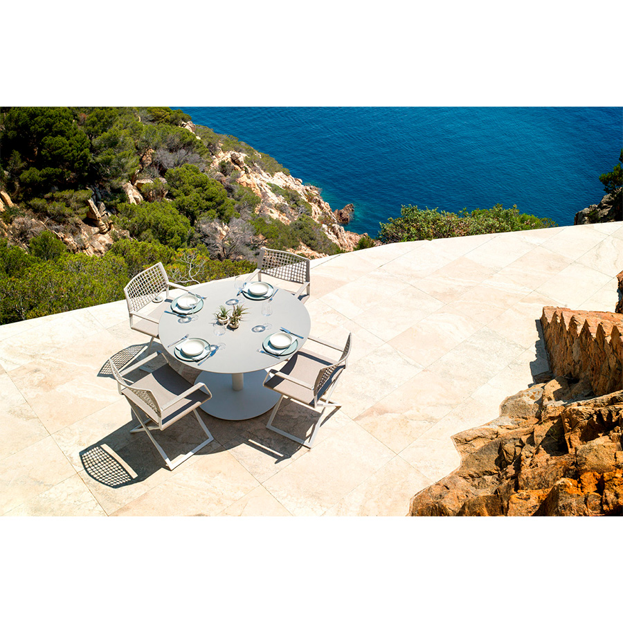The enamel coating makes the table water, heat, frost, UV, and stain-resistant. This timeless table is available in various heights and sizes and goes well with various designs from the Tribù collection.