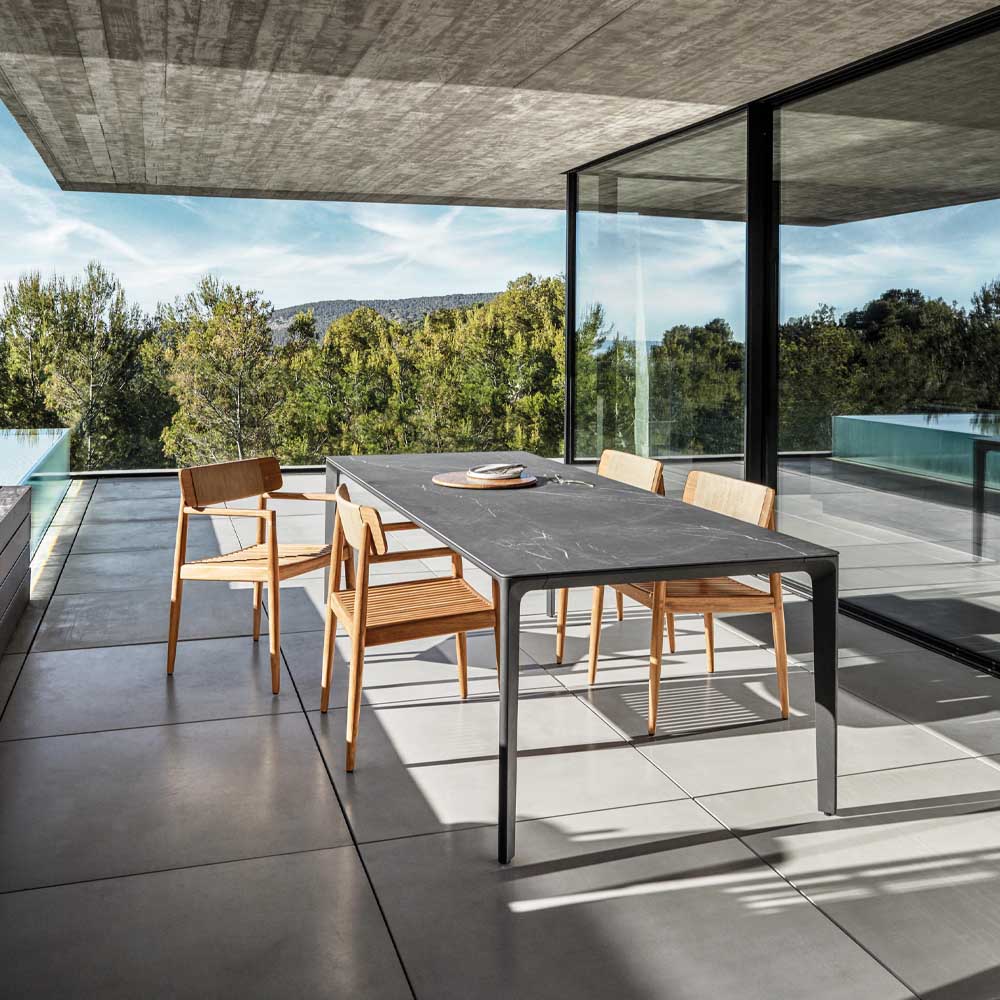 The Carver outdoor table is a design by Henrik Pedersen for the brand Gloster. It is an elegant and modern design, in which the harmonious contrast of its materials stands out, with a discreet aluminum structure that highlights its spectacular ceramic top. Available in different tabletop finishes.