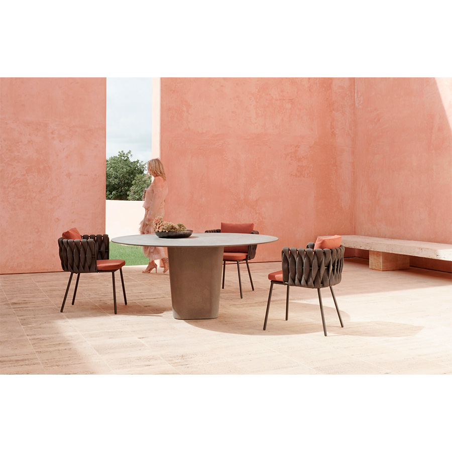 Monica ArmaniThe elegant Tao table collection is a perfectly balanced selection of contrasts: prominent sculptural pedestals and slim, tactile tabletops. Designer Monica Armani has used refined, lightweight concrete to look for elegant solidity. The dining table has a central pedestal, which supports around, and finally polished top available in two diameters: 160 and 180 cm.