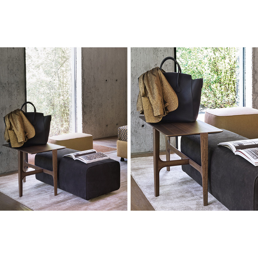 Massimo CastagnaBench with wooden structure, elastic straps and non-deformable foam padding. Removable cover in fabric, leather or Ecopelle Dollaro. Steel legs, varnished or chromed, 4 cm high.