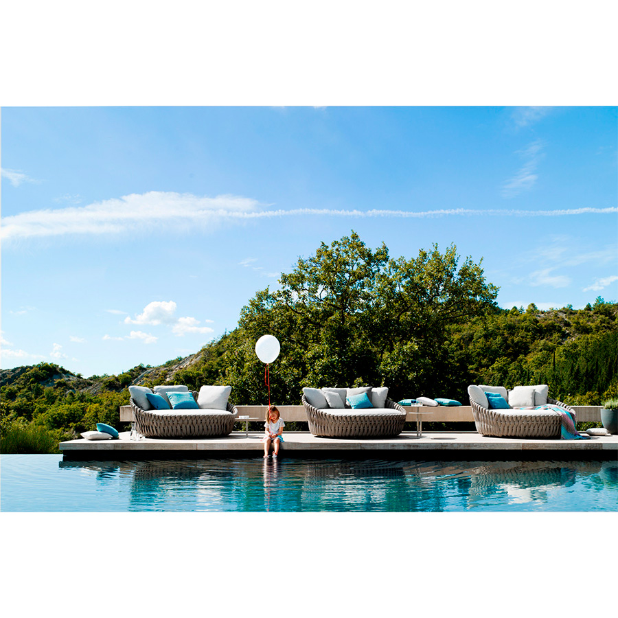 The material used for the braiding can be described as innovative, without further ado: foam covered with a seamless, woven, tube-shaped cover of textilene and polyolefin. This material has a surprisingly natural look but is 100% weather resistant. Moreover, thanks to the comfortable outdoor cushions, the comfort of use is charming.