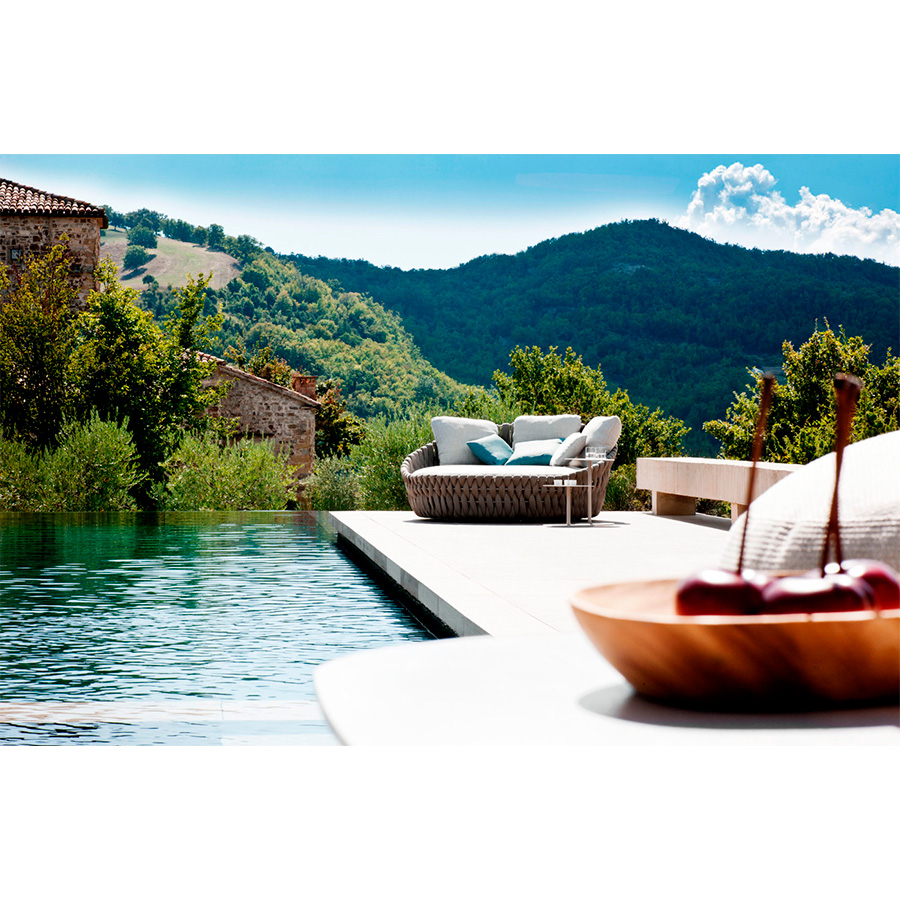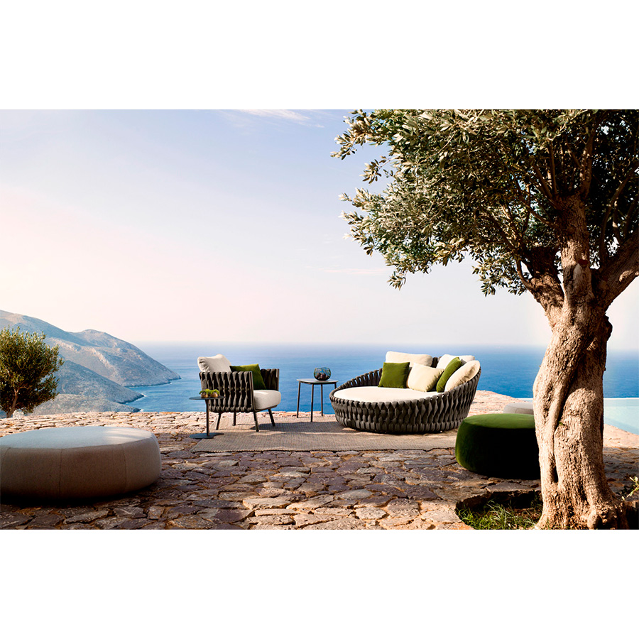 Monica ArmaniThe Tosca outdoor furniture collection is warm yet welcoming, elegant, and intriguing. It was the first time Belgian outdoor furniture manufacturer Tribù had worked with a woman on their designs. Femininity and emotion were the keywords in this exclusive outdoor furniture design, which is characterized by a seat with a single extra-wide and vertical braid supported by fine flared legs.