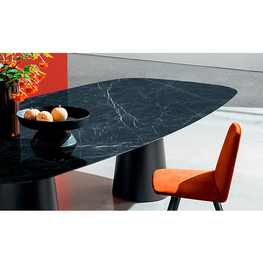 Studio SovetDining table with base in chromed or lacquered metal in different finishes. Tempered glass or laminated wood top