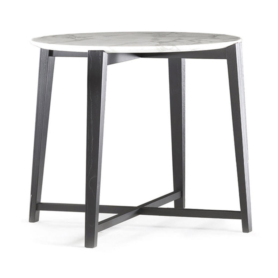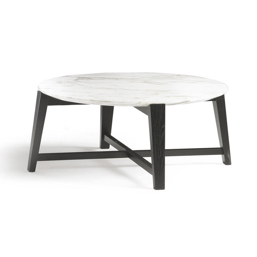 FlexformA family of tables reveals the taste for beauty and simplicity of forms. The structure is in solid wood – American walnut and ash varnished in a wide range of shades – and the four legs are characterized by an elegant conical section that forms a cross-shaped design at the base of the table. The top, round in shape and with a beveled edge, can also be in wood, in the same essences as the base, or in precious marble. Tris coffee tables are available in four sizes. They can be harmoniously combined with all the seats in the Flexform collection, alone or combined with each other in a refined game of overlays.