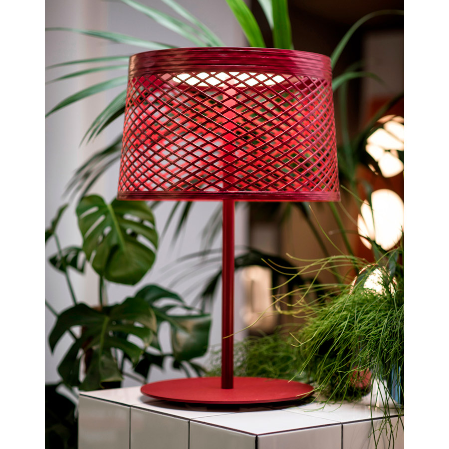 Marc SadlerOutdoor table lamp with direct downward light. Diffuser and post in composite material on a fiberglass base painted with liquid. The diffuser is made of strips of composite material modeled manually on the mold; the superimposed ribbons create the braided surface, later painted by hand.