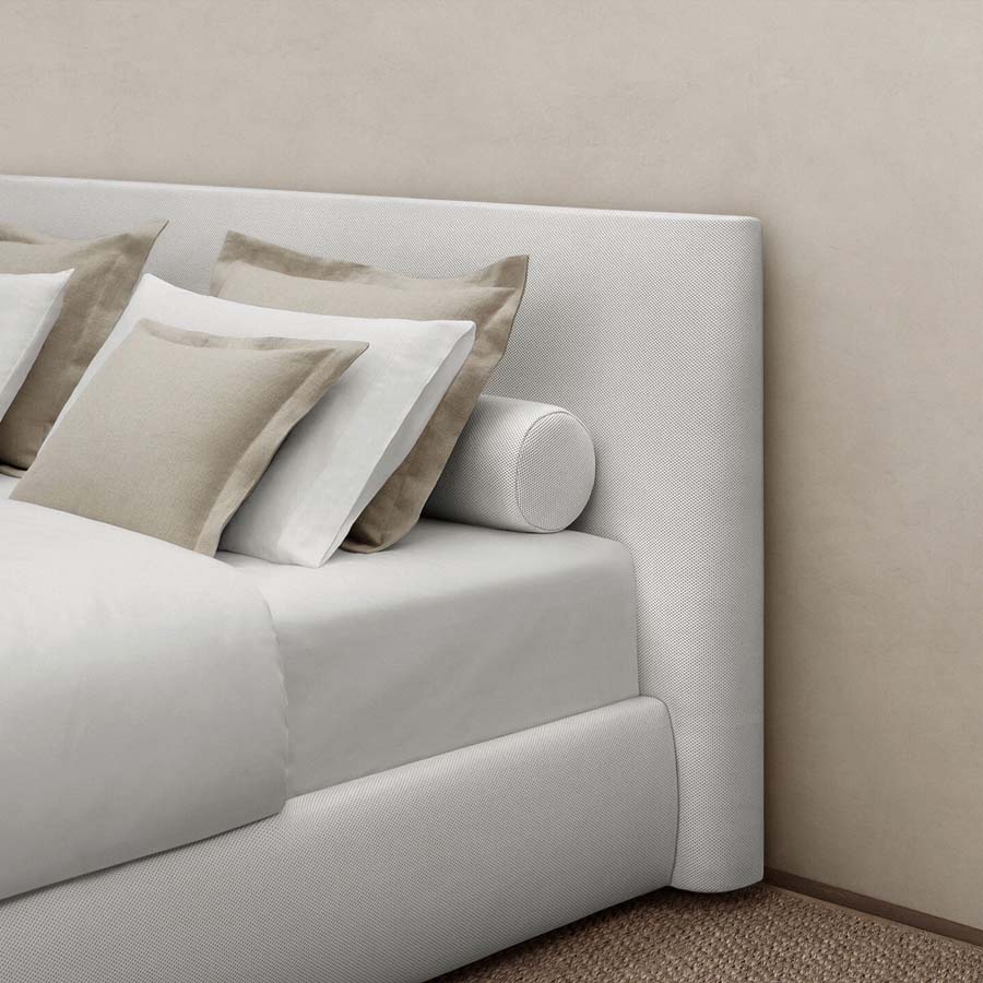 In combination with the sofa and armchairs from the same collection, the bed, which can have a suspended base on visible legs, upholstered to the floor, or with storage, features a voluminous and highly comfortable headboard that connects with the seating of the sofa and armchairs in the same family. This collection also includes a standalone headboard and a sofa bed.