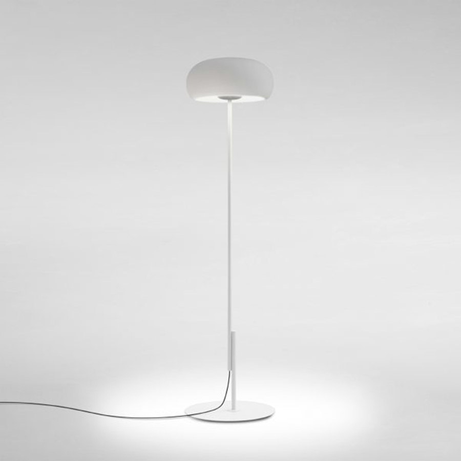 Joan GasparJoan Gaspar uses a closed glass diffuser as a reflector, with the originality of placing the light source outside the screen instead of inside it. It emits more light than we expect without dazzling us: a large part of it is directed downwards, and the rest filters towards the interior of the screen, illuminating it subtly.