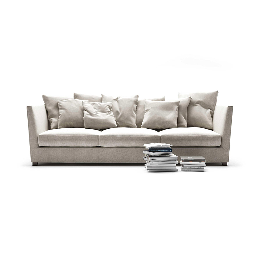 Equipo FlexformBorn in 1984 and revised in 1999, Victor is a sofa that fully expresses the Flexform sofa concept. The Victor sofa is characterized by its sober elegance, balanced in the proportions of the base, the seat, and the back cushions. The structure is wood with polyurethane foam padding and a matching cover. The backrest and armrest are the same height and form the classic “cockpit”, a nest designed to accommodate the seat cushions made in the variants with feather padding and inserts in non-deformable material or in polyurethane and Dacron. Victor is a sofa that preserves the purity of its design both in the linear version with two or three seats and in the modular version. Its wide range of options allows you to create multiple combinations. In the Victor Large version, the depth increased to 115 cm allows you to accommodate numerous cushions, which not only help to make the sofa even more welcoming, but also give it a decorative tone of contemporary taste.