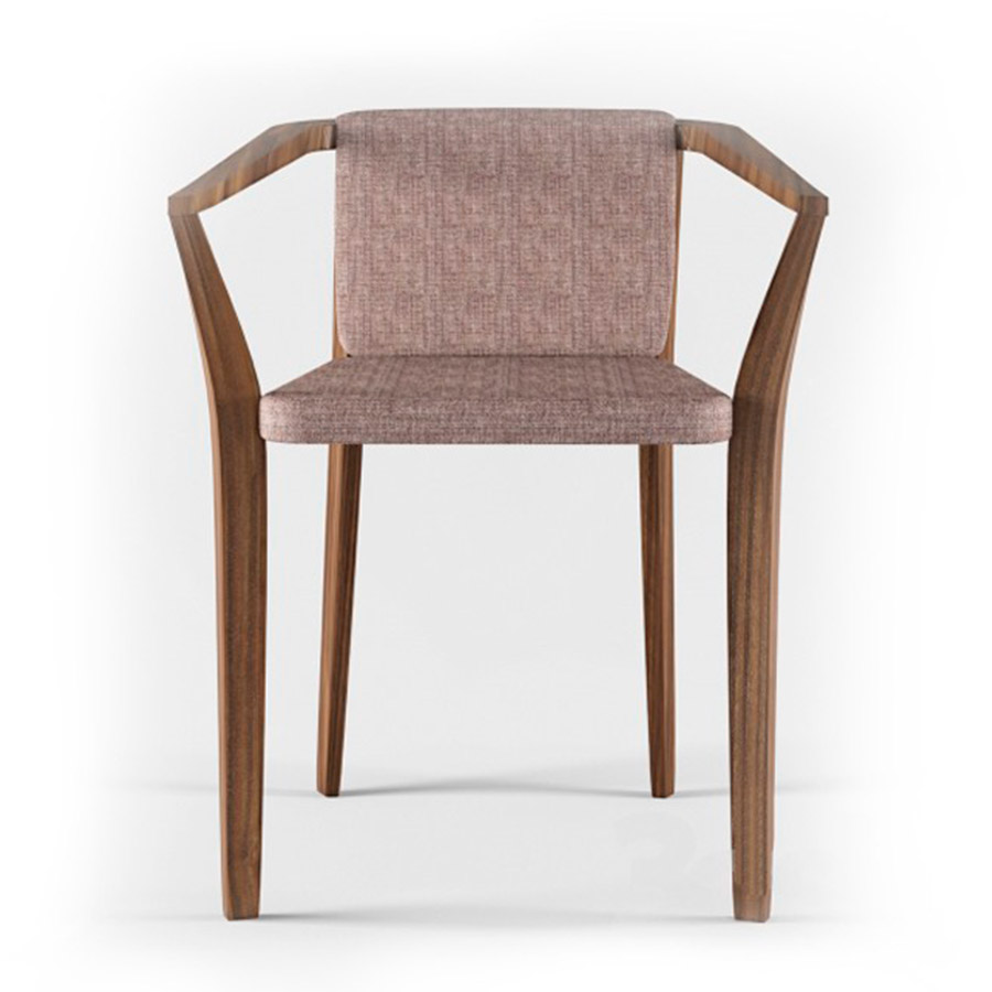 Bruna VaccherViky is a chair with a solid oak wood structure, in which the backrest continues along the sides to give shape to the armrests. Viky is available in three variants: upholstered seat (Viky 1), upholstered vertical seat and back (Viky 2), upholstered horizontal seat and back (Viky 3).