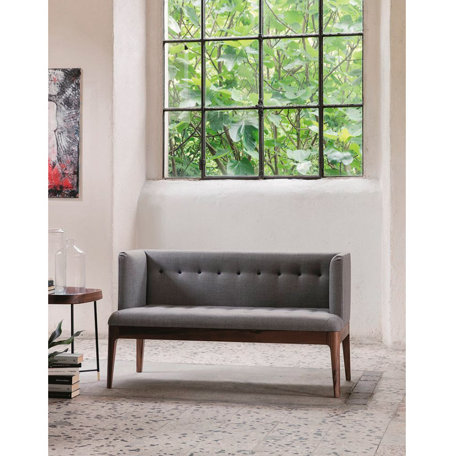 C. BallabioSofa with structure in solid canaletta walnut and seat with quilted decoration in the fabrics of the collection. Possibility of combining different fabrics between seat and backrest and ordering tone-on-tone or contrasting buttons.
