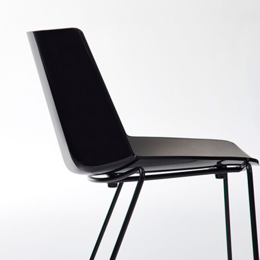 . Taburete Aïku Soft: la versión de trineo, en todas las configuraciones, es apilable, con una capacidad máxima de apilamiento de 4 piezas, con debajo del asiento para apilar.