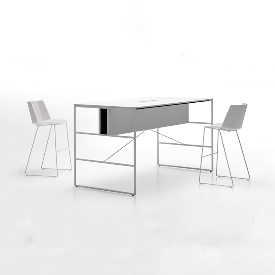 . base de patín de alambre de acero, pintado de blanco mate, gris grafito mate o cromado; Altura del asiento disponible: 64 cm y 76 cm.
