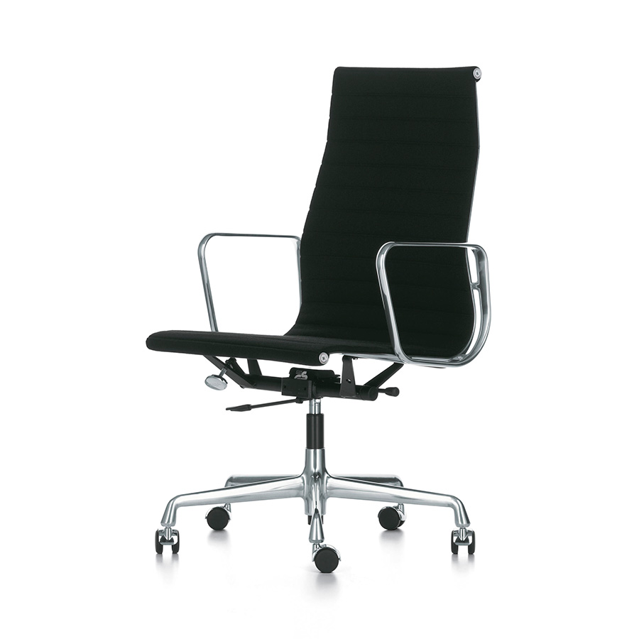 Los modelos EA 117, EA 118 y EA 119 son las sillas de trabajo del Aluminium Group diseñado por Charles y Ray Eames. El mecanismo de inclinación del asiento puede ajustarse al peso del usuario ofreciéndole un confort óptimo. La amplia selección de colores de tapizado permite encontrar con facilidad la silla perfecta para cada oficina doméstica. La Aluminium Chair EA 119 se distingue de las EA 117 y EA 118 por su respaldo más alto. La EA 118 tiene un asiento algo más estrecho y la posición es más indicada para trabajar en una mesa.