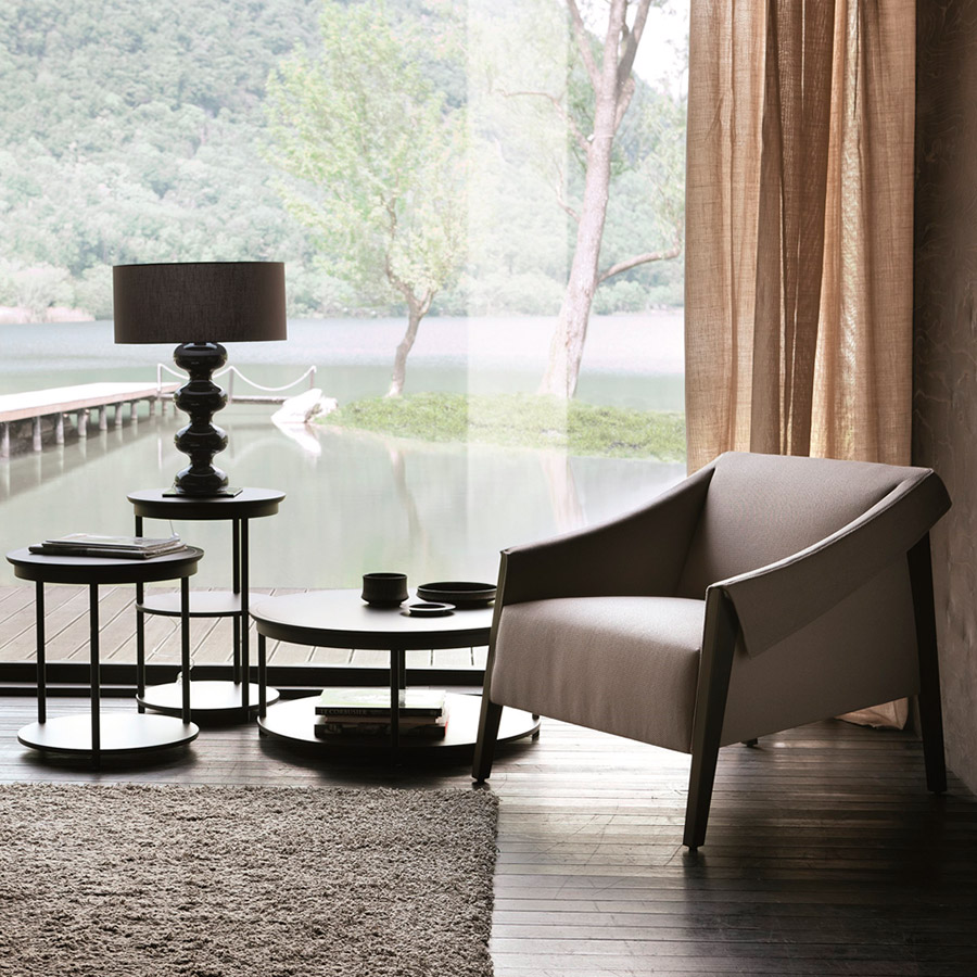 G. ViganòButaca con estructura de nogal canaletta macizo y revestimiento en las telas de la colección.