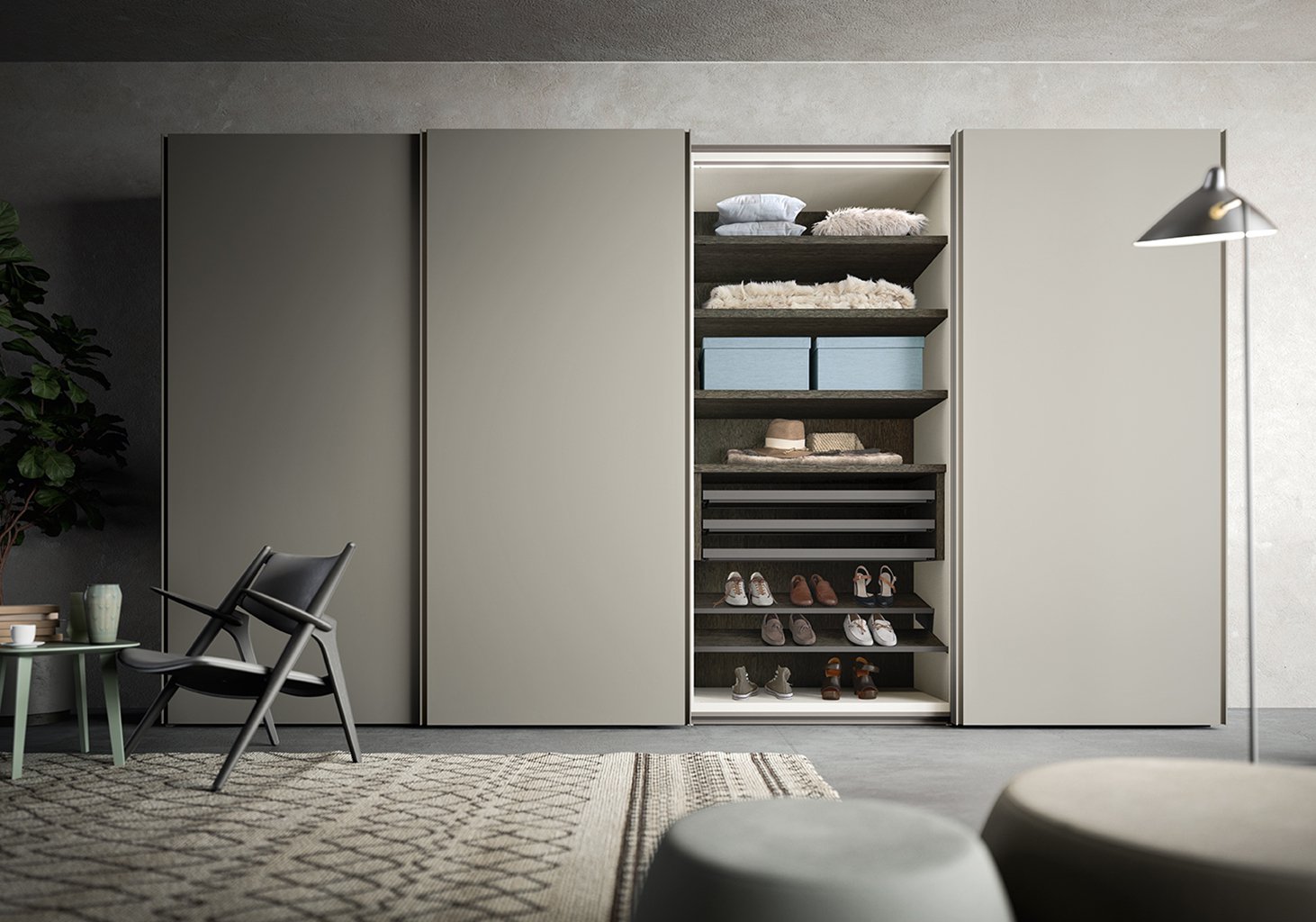 En cambio, los armarios de puertas correderas son la opción correcta cuando se dispone de poco espacio para la apertura. Las bisagras, fabricadas con materiales de vanguardia, están probadas para más de 80.000 ciclos de apertura y garantizan durabilidad y fiabilidad a lo largo del tiempo.