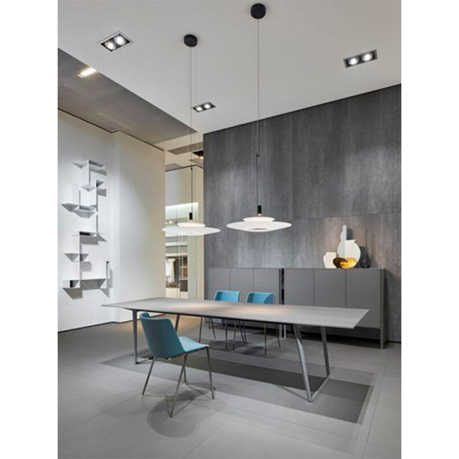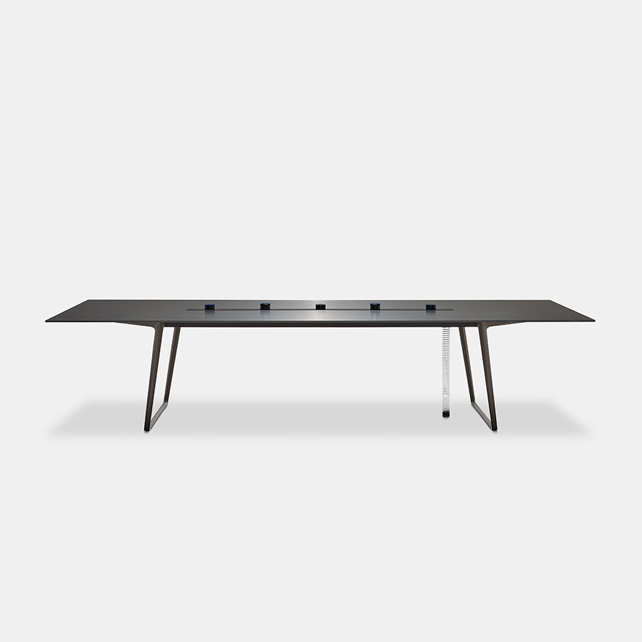Claudio BelliniLa ligereza combinada con la percepción dinámica de la suspensión es el tema desarrollado por el diseño del nuevo sistema de mesa Axy. Una arquitectura básica en la que el diseño original de los dos puentes estructurales, completamente de aluminio, recompone las tensiones y líneas de resistencia con una eficacia expresiva.