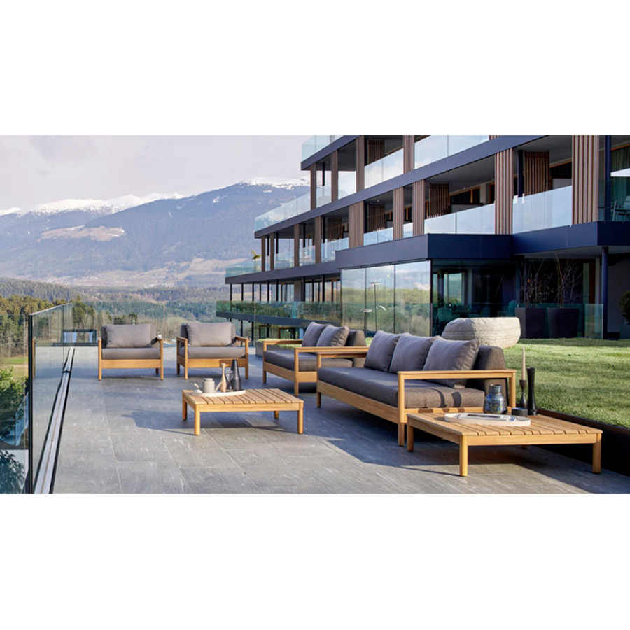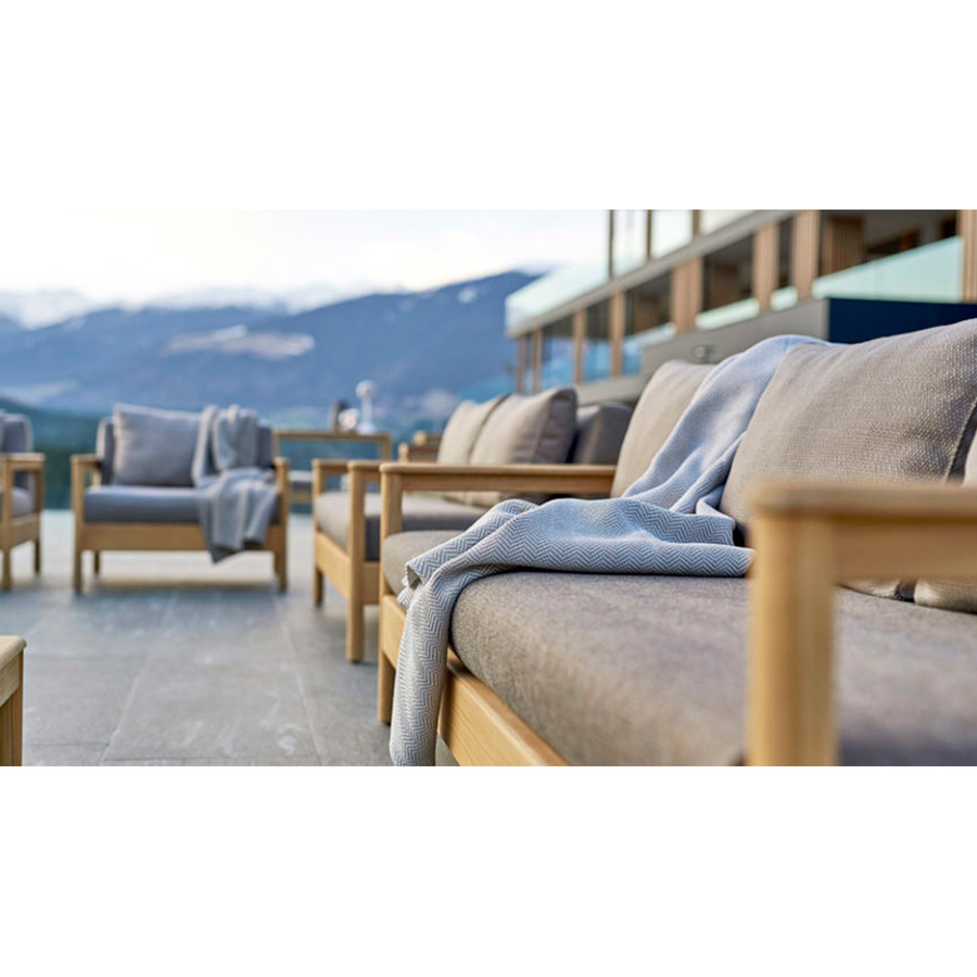The armchair has a large and comfortable seat. These characteristics guarantee a total substitution in every outdoor environment: gardens, terraces and balconies, porches, patios, and swimming pools.