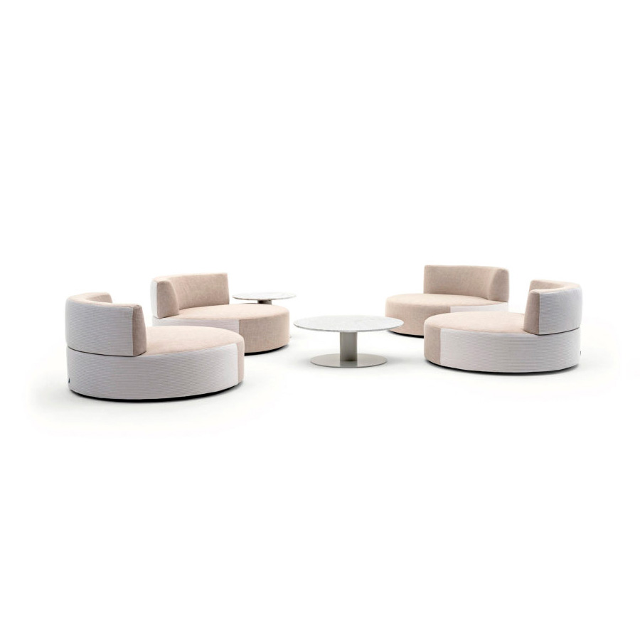 Belt es un sillón moderno y elegante: la forma circular es el resultado de un diseño original y hace que la estructura sea cómoda. El estilo versátil lo convierte en un asiento ideal para entornos contract como hoteles y tiendas, pero también para terrazas o jardines privados.