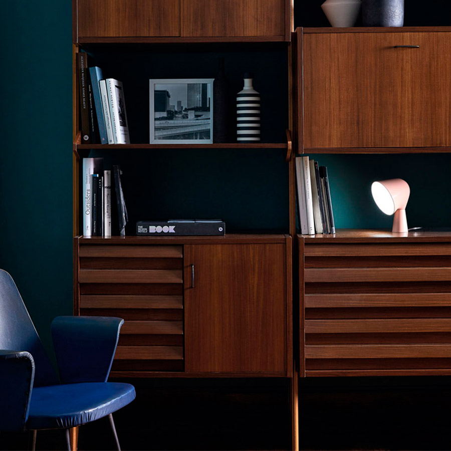 Ionna VautrinLámpara de mesa de luz directa. ABS coloreado en el compuesto de moldeo mate para la base con armazón en metal en el interior, parte superior en ABS coloreado en el compuesto de moldeo acabado brillante con en el interior una parábola blanca y un difusor, ambos en policarbonato. Interruptor on/off en el cable transparente.