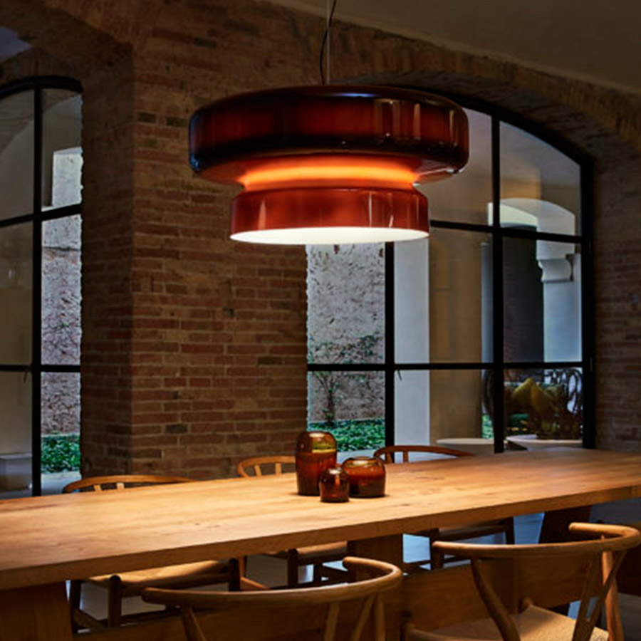 Joan GasparLa Bohemia es una lámpara singular. Joan Gaspar diseña una lámpara de suspensión de grandes dimensiones, con gran eficacia lumínica, y muy parecida al vidrio. Un reto difícil de resolver que el diseñador consigue utilizando como material el policarbonato.