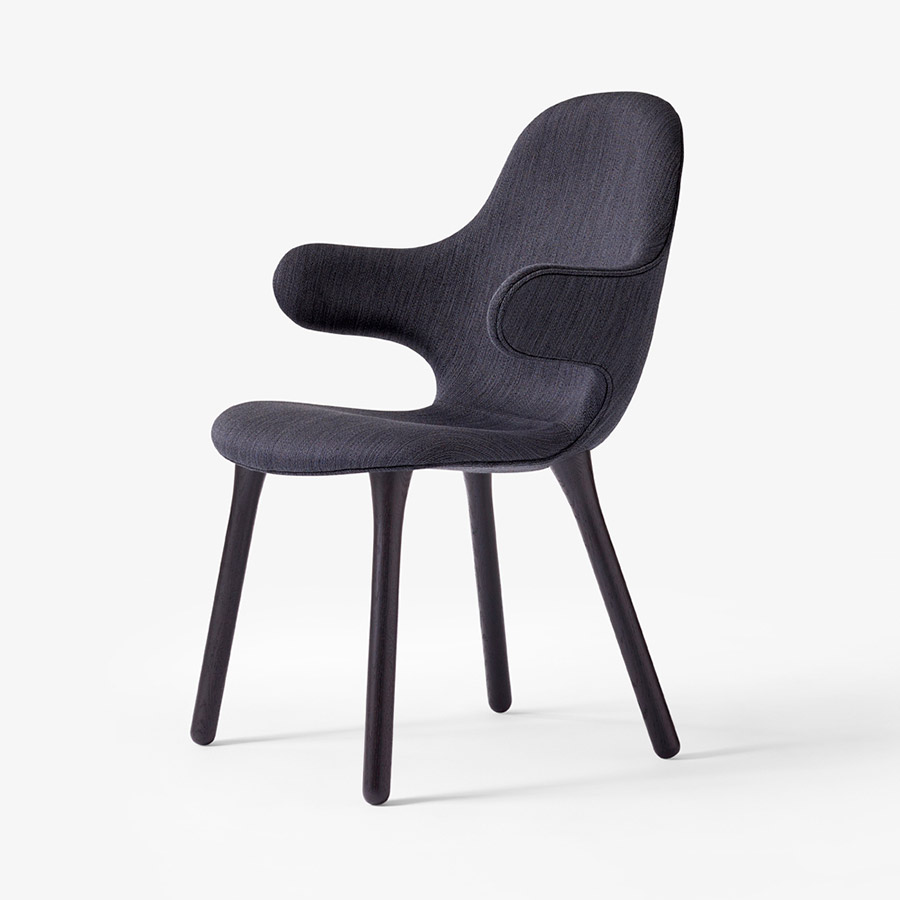 Catch es una silla que te recibe con los brazos abiertos. Los reposabrazos se extienden desde la carcasa como extremidades. Las líneas serpentinas le otorgan una ligereza lúdica que contrasta con la robustez de sus patas de madera maciza. Ideal para uso doméstico, la silla Catch es una pieza llamativa con un diseño único que proporciona un nivel óptimo de confort y seguridad. Éste modelo fue la primera contribución de Jaime Hayon a la colección & Tradition.