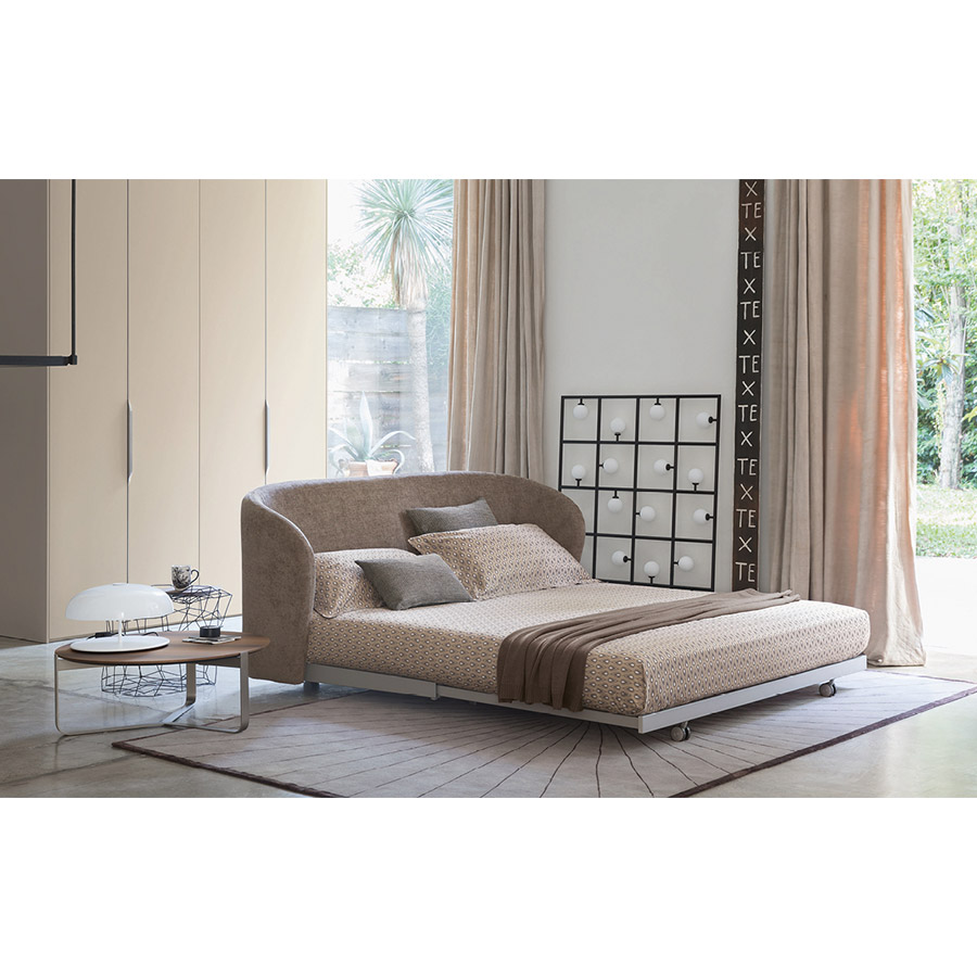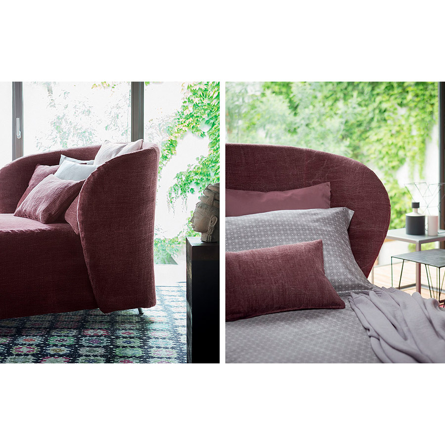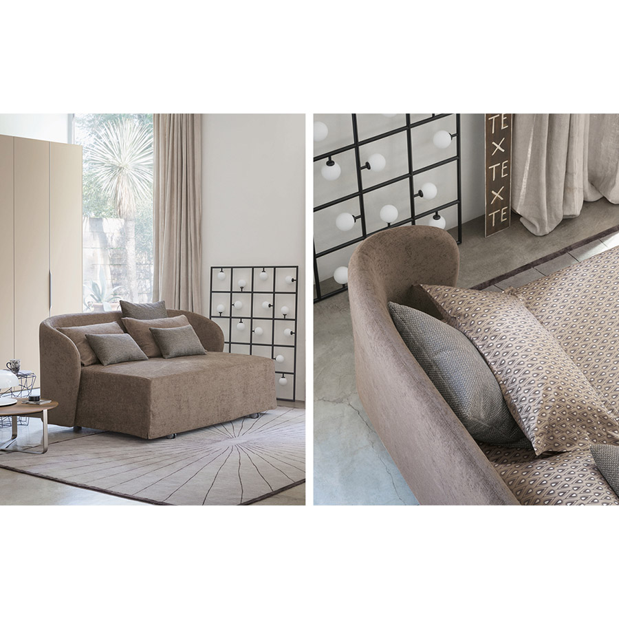 Riccardo GiovanettiCéline con asiento profundo y extremamente acogedor, puede ser un sillón-chaise longue que se transforma en pocos movimientos en una cama individual (colchón cm. 90×200) o un amplio sofá que se transforma en una cama de matrimonio (colchón cm. 160×200). El revestimiento de ambos modelos, enteramente desenfundable, está realizado en los tejidos de la colección Flou o en Ecopelle y puede ser en una sola variante de color o en dos variantes de color de la misma tela: una para la parte exterior del respaldo y las partes laterales de la funda de asiento, otra para la parte interior del respaldo y la parte superior de la funda de asiento. Ambos modelos están dotados de colchón Memoform o Special que se doblan y se desdoblan sobre la estructura con somier de lamas, que se abre frontalmente gracias a ruedas.