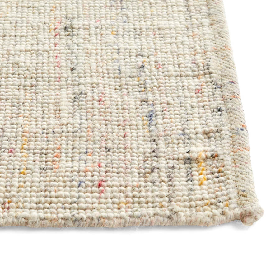 La alfombra Crayon de Hay, elaborado con maestría a partir de una mezcla de lana de Nueva Zelanda, viscosa y algodón tejidos de forma apretada, añade un elemento textural a tu espacio vital. La alfombra complementa cualquier estética interior gracias al fondo neutro, mientras que sutiles motas de colores múltiples recorren toda la superficie, incorporando suavemente una capa adicional de color y textura.