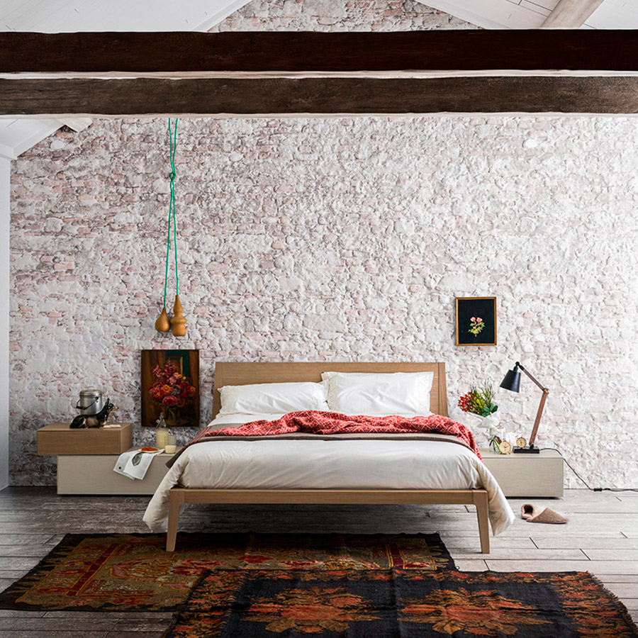 Haften StudioEste modelo se inspira en la recuperación de las formas retro de las camas del pasado, con líneas esbeltas y una estructura que parece desvanecerse. Pero el toque de los espesores en el acabado de la cabecera, en el dibujo de las patas y en la elegante curvatura de todos los elementos la convierten en una auténtico objeto de valor que se puede completar con mullidos cojines para la cabecera.