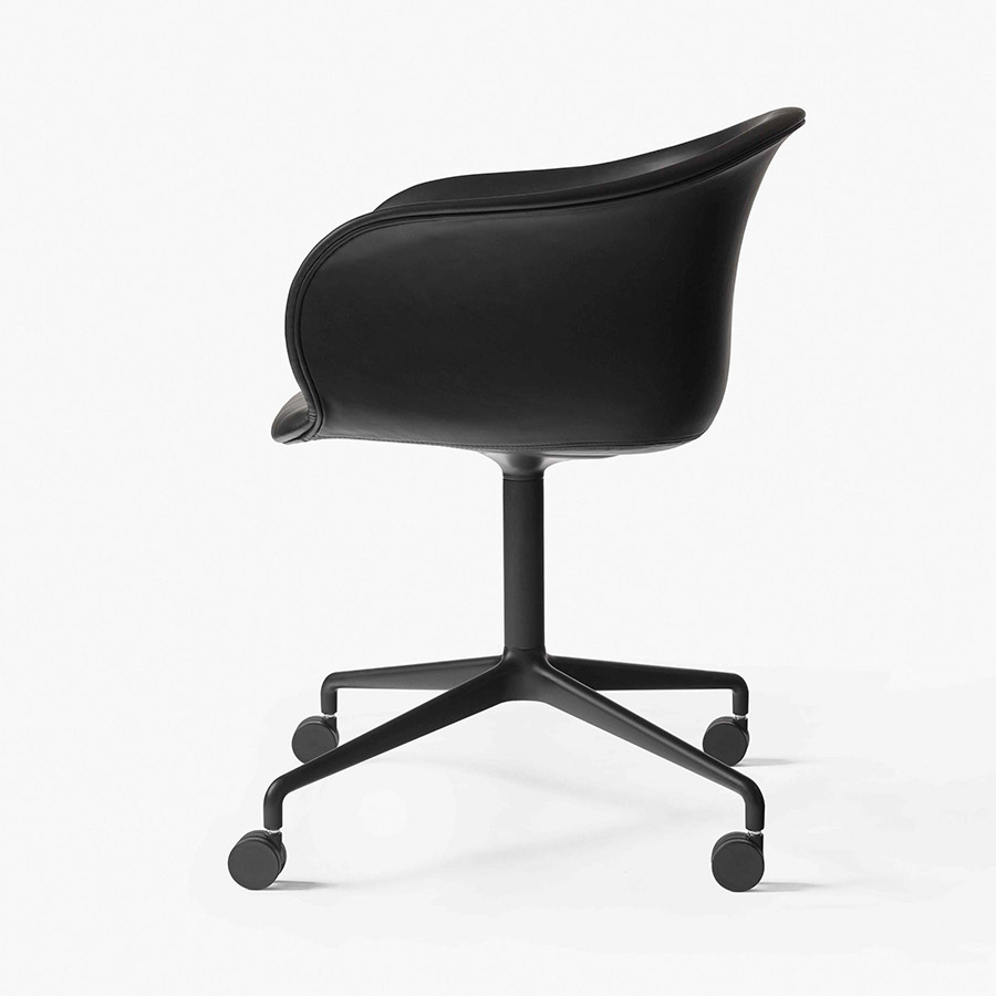 Esta silla se define por una carcasa de asiento suave y acogedora, unida a una base giratoria de aluminio pulido o con recubrimiento en epoxy. Gracias a su cómodo asiento, es perfecta para sentarse durante largos períodos de tiempo para cenar o trabajar. Disponible en distintos colores.